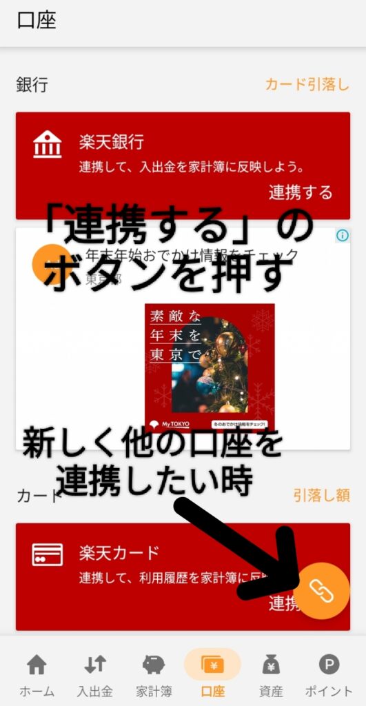 ⑧我が家は楽天銀行を利用しているので初めに連携ボタンが出ました。