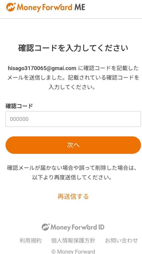 ③登録したメールに確認コードが届きます。【確認コード】を打ち次へを押します。