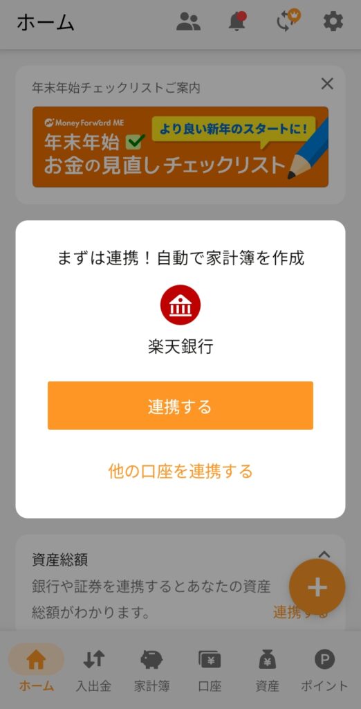 アプリを導入して、銀行やクレジットカードを連携できたら準備完了です。